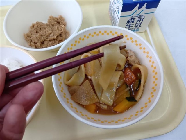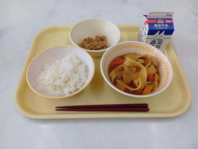 今日は、シーチキンのそぼろ煮、ほうとうでした。