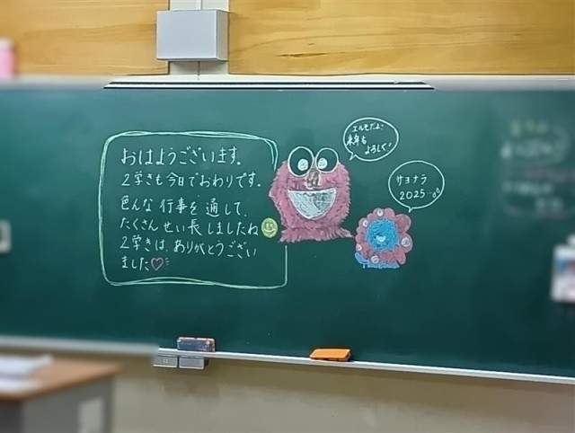 2学期の成長と、3学期のさらなるがんばりの期待を込めてのメッセージですね。