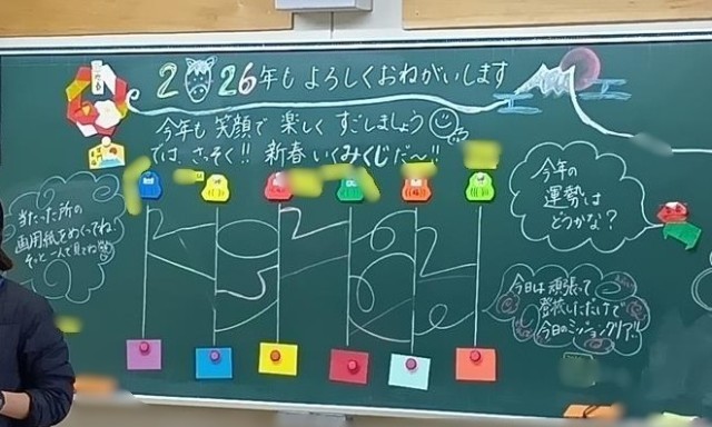 黒板に先生からのメッセージがありました。3学期に向けて、みんなで一緒にがんばっていきましょう。