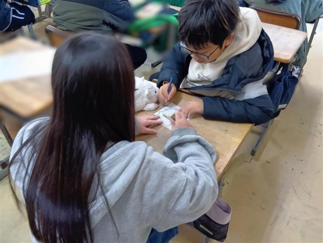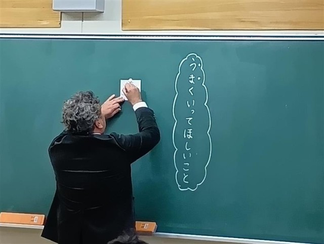 自分の目標を書いているクラスもありました。先生自ら「うま(午)くいってほしいこと」を書いている姿もありました。