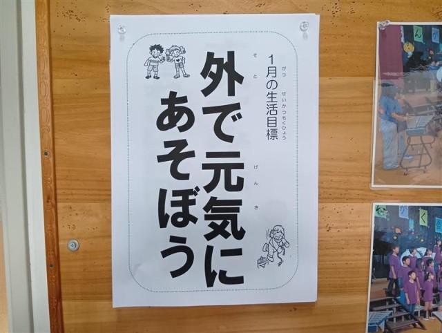 寒い日が続いていますが、寒さに負けない元気な体を作るためにも、天気の良い日は外で元気に遊びましょう。