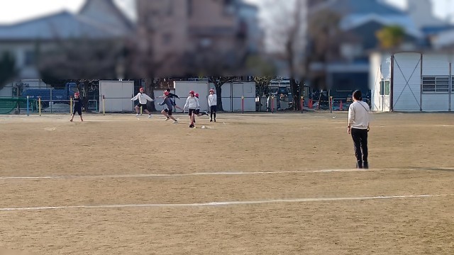 5年生が運動場で活動していました。少し変則的なリレーかな。楽しみながら運動することはいいことですね。