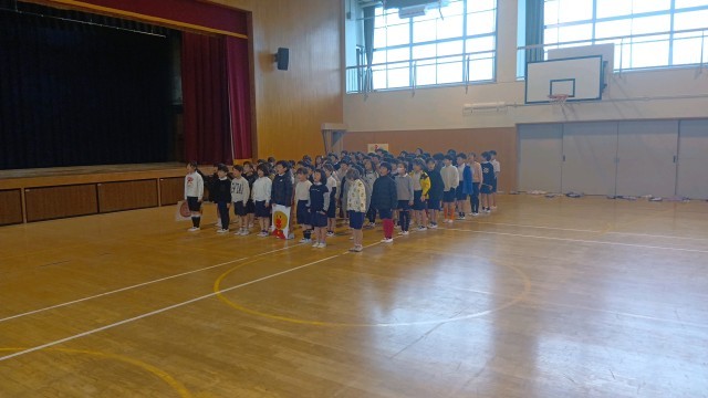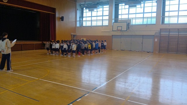 2年生が体育館で平和学習に向けて、練習をしていました。