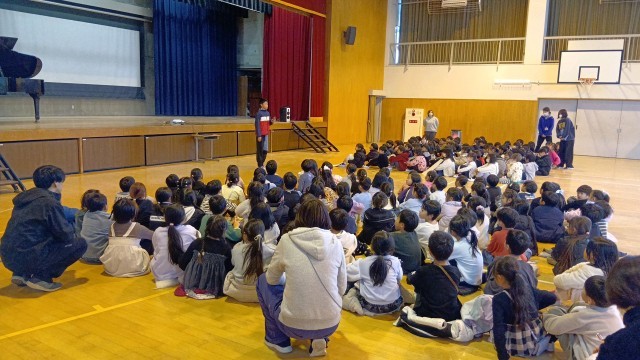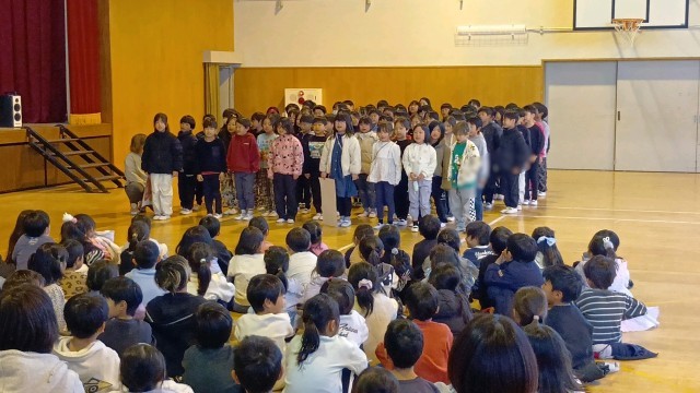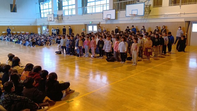 6年生の挨拶からはじまり、1年生、2年生から平和に関しての願いや思いを言葉や歌にして伝えてくれました。
