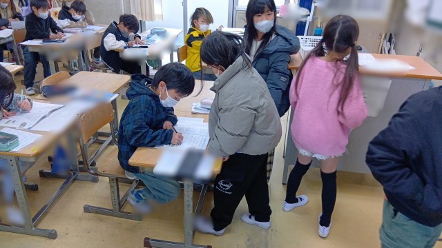 みんなで答えを確認し合っていました。お友だち同士で確認し合うことでより理解が深まりますね。