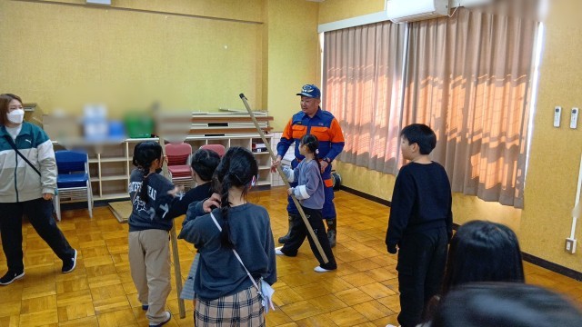 ボランティアで町の消防団も先生がやっているということで、今日はいつもと違う役で登場でした。
