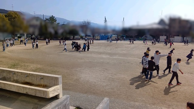 昨日は運動場の状態が悪く、使えなかったですが、今日は天気もよく、いつも以上にたくさんの子どもたちが外遊びやマラソンの練習をしていました。