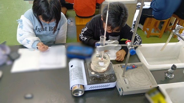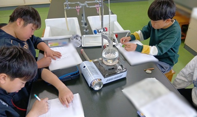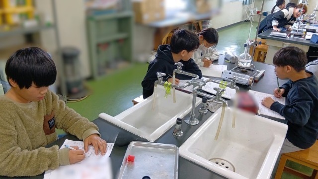 4年生が理科室で実験をしていました。