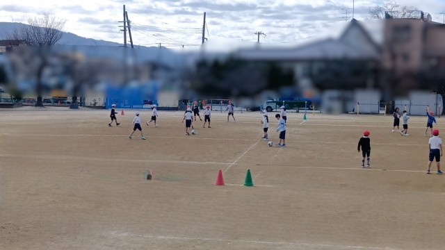 2年生は運動場でサッカーです。