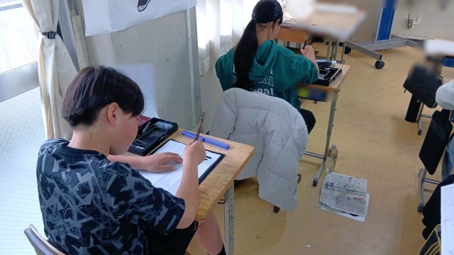 5年生が習字の時間でした。