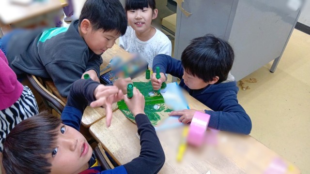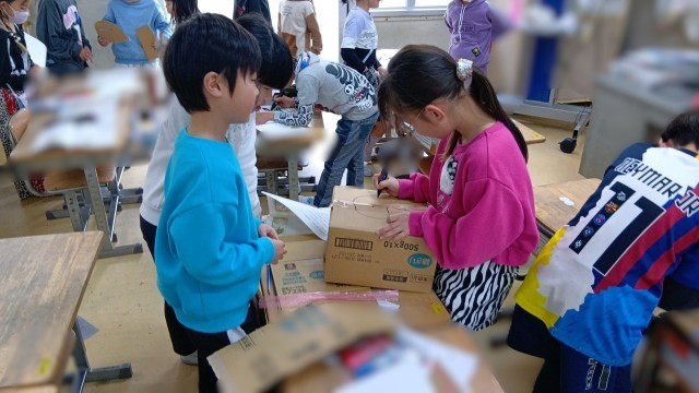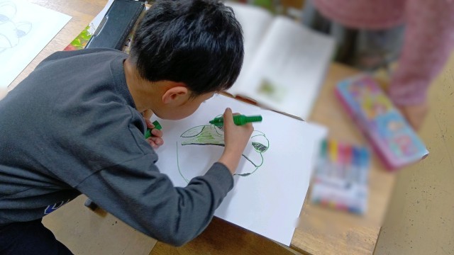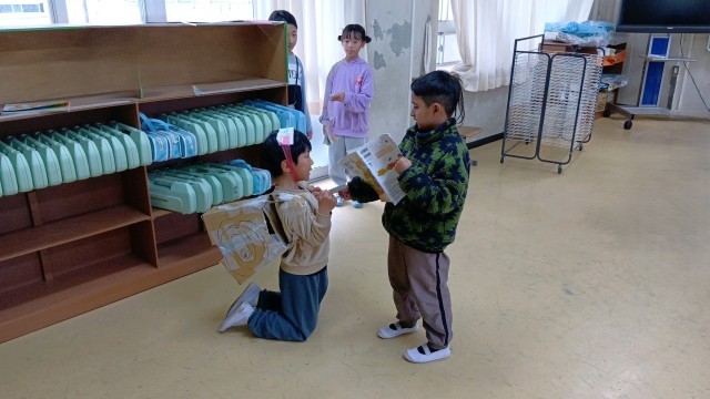 「お手紙」という物語にでてくる、カエルくん、ガマくんやカタツムリくんになって友情の物語を完成させていました。