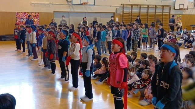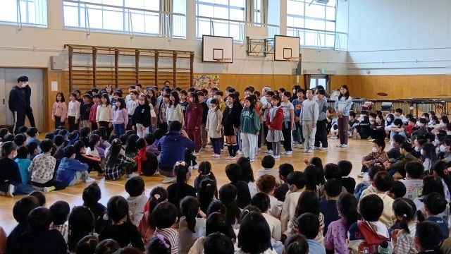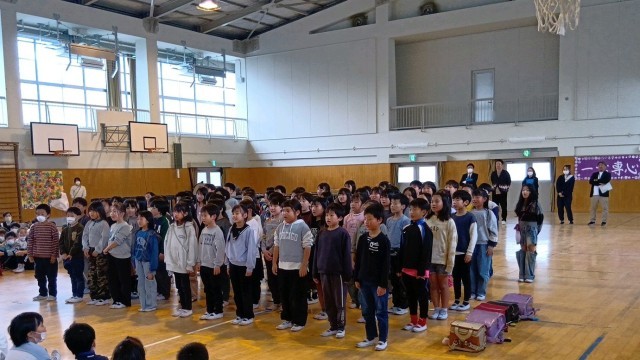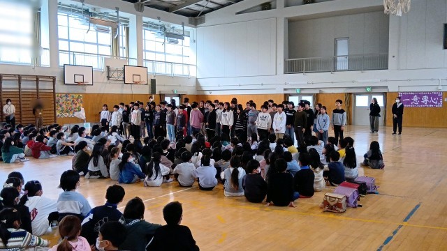 各学年から6年生に感謝のメッセージや心のこもった歌を届けました。