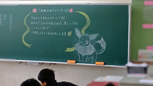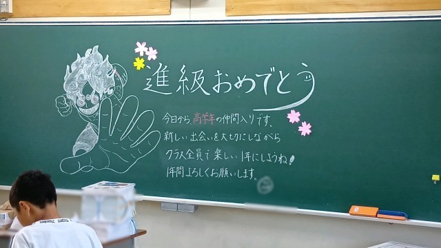 新しい学年になって、各クラスでも先生からのメッセージが書かれていました。