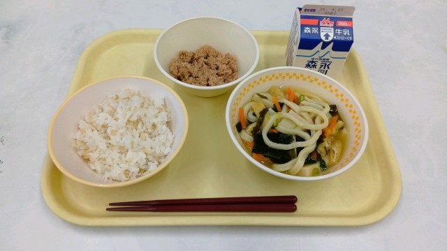 | 今日は、わかめうどん、玄米ご飯にシーチキンのそぼろ煮をかけて食べました。 わかめうどんは出汁も美味しくて、うすあげなども入っていて美味しかったです。 玄米ご飯もシーチキンのそぼろ煮があって、食欲が増しました。 |