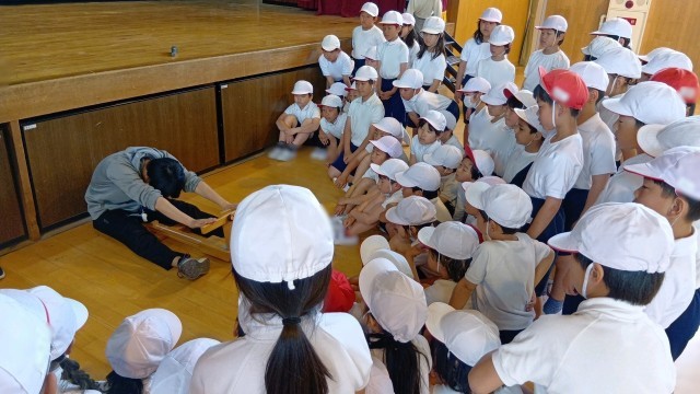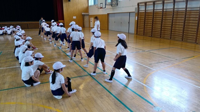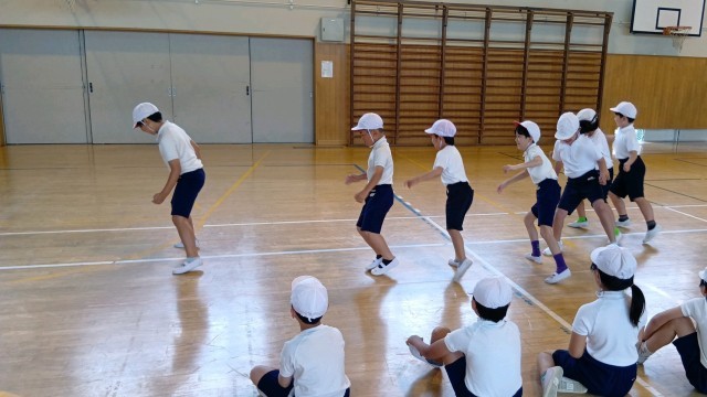 | 3年生が体育館で体力測定の練習をしていました。 反復横跳びや体前屈など、先生の見本も見ながら学んで取り組んでいました。 学力も体力もそれぞれ向上させていくことは大切ですね。 |