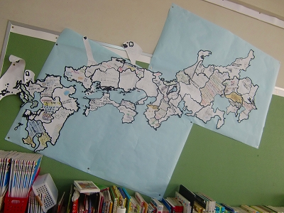 4年生は、社会で「巨大地図」に取り組んでいます。各都道府県担当者が調べた内容を書き込み、貼り出すことで、地図はどんどん成長をとげています。「もう、こんなに大きくなったのか!」と私も感心しました。東北地方担当のみなさん、がんばってくださいね!