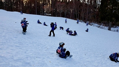 雪遊びの後、入浴をすませ、5年生はもうすぐ夕食の時間になります。