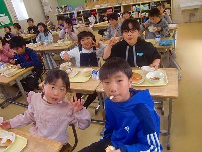 2月18日(火)の給食献立は、こってり酢豚にあっさり大根スープ、ミルクバター、コッペパン、牛乳です。ややこってり感のあるボリューム満点の酢豚と、うす味のあっさり大根スープの組み合わせが秀逸です。2年生のクラスにお邪魔したのですが、おいしい給食に笑顔が輝いていたことは言うまでもありません。