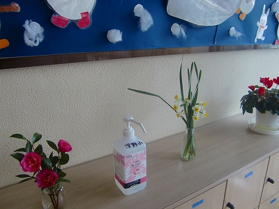 2月19日(水)玄関横に「アルコール消毒液」を設置しています