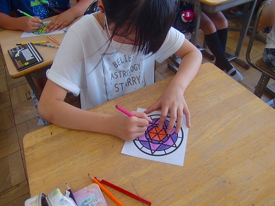 6月17日(水)5年生:図工「カラフルまんだら!色を使って遊ぼう!」