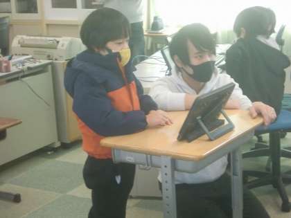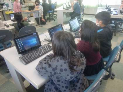 12月2日(水)、2年生は生活で、教室からPC教室に場所を移し「PC授業」に取り組みました。いつものことですが、2年生達はPCに興味津々です。本校では1人1台のPCが用意できますので、みんな、専用のPCで学習を進めることができます。手のひらよりもマウスの方が大きい2年生ですが、PC操作は大人顔負けの2年生達です。