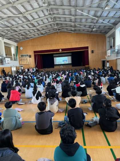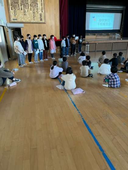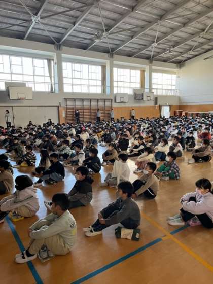 児童朝礼の後に、6年生が平和学習報告会を開きました。修学旅行で広島に行き、原爆の事を知り、戦争の悲惨さや恐ろしさ、そして平和、命の大切さを学んできました。その報告を、映像等を使い発表してくれました。話を聞いている子どもたちも、真剣な眼差しで、驚きもあったと思いますが、大変良い内容でした。世界の平和を祈ってくれたと思います。
