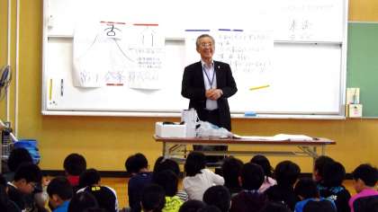 10月17日(金)大東市諸福にある「ばね」を作る会社の山中さんに来ていただいてしごとについてのお話を聞きました。社長さんはみんなに大事な話を次から次へとされました。「ばねは戻らないとばねじゃない。熱を加えることで強いばねになるんだけど、みんなのような子どもも同じなんよ。勉強することで強くもなるしかしこくもなる。何もしなかったらだらーんとのびたままです。」等々ドキッとするような話をたくさん聞かせてもらいました。山中さん、ありがとうございました。