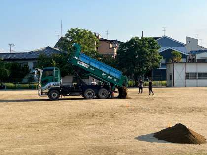 運動会に向けて運動場に土を入れました。