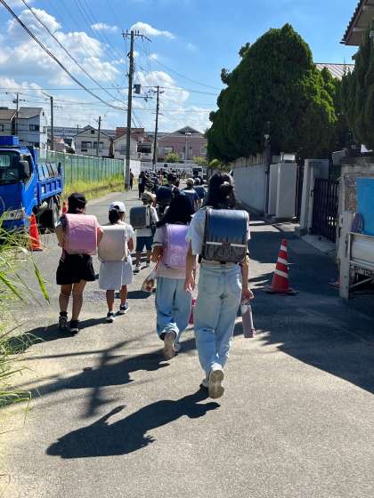 今日は台風を想定した避難訓練として、地区児童会を行い集団下校の練習を行いました。