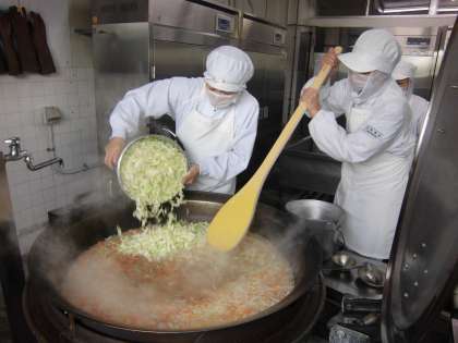 2枚めの写真は、野菜スープにキャベツを入れているところです。