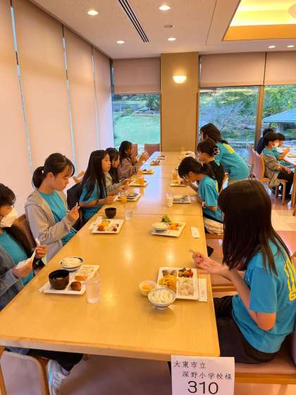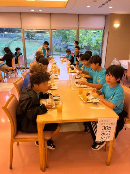 おはようございます。みんな元気です。体調不慮者はいません。昨夜はぐっすり眠れていたようです。朝食は、バイキングです。自分でチョイスして、楽しいそうに食べていました。