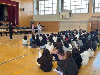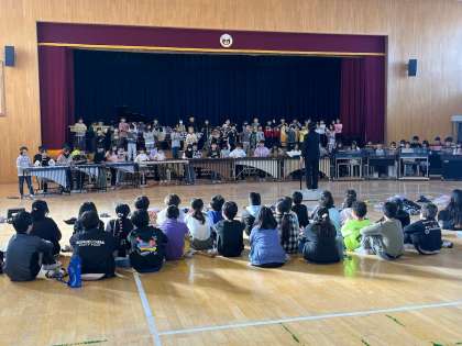 1年と2年、3年と4年、5年と6年がそれぞれペア学年としてお互いの発表を鑑賞しました。観客がいる状態での発表を経験させたいということと、お互いの学年のよいところを見つけるようにして聴く態度を養うことが目的です。