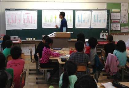 3年2組の教室で算数の研究授業が行われました。単元は「表とグラフ」でした。