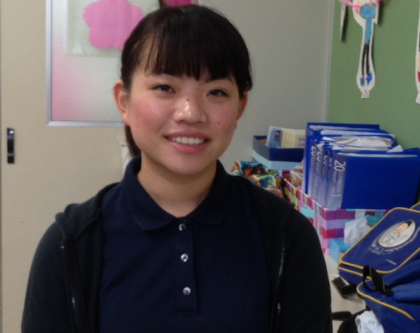 「一週間お世話になりました。とっても短い1週間でしたが元気いっぱいで素直で優しい子ども達ばかりだったのでとても楽しい一週間でした。沢山の授業を見学させていただき、とても良い経験となりました。この経験を生かして、今後立派な栄養教諭になれるよう頑張りたいと思います。(吉川智子)