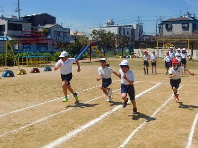 暖かな日差しが降り注ぐ校庭で、5年生は、元気いっぱいに50m走に取り組みました。NHK大河ドラマ「いだてん」を彷彿させる、力強い走りです。大地をけって推進力を生み、風のごとく走り抜けるその姿は、若々しい躍動感に満ちています。俊足を撮ろうとシャッターチャンスを狙うのですが、速すぎて鮮明な画像を撮ることができませんでした・・。何とか対象を判明できる2枚を掲載します。