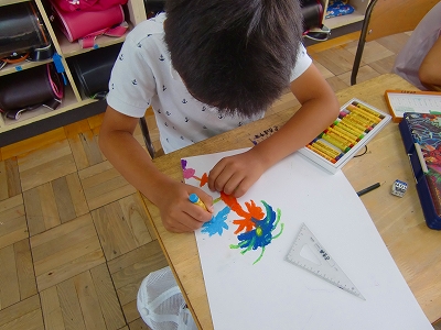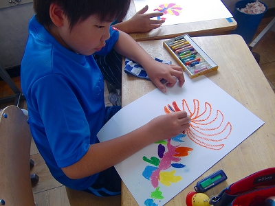 4年生は図工で「宇宙に咲く花」に挑戦し始めています。題名からして奇想天外で、4年生の発想の豊かさが、うかがい知れます。クレヨンを使用して、自由な発想の「宇宙に咲く花」を描き出しています。出来上がりに乞うご期待!