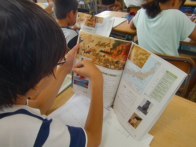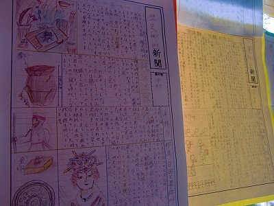 6年生社会科学習が「歴史」に特化しているのは、既にお知らせしている通りです。板書を見ると、早、鎌倉幕府の学習の様です。歴史学習に勤しむ6年生達の表情は真剣そのものです。「もうすぐすると激動の戦国時代にはいるんだな」と思って、ろうかにでると、窓に歴史新聞が掲示してありました。その見事なこと・・・。企画力、取材力、構成力、文章力、絵画力・・・。流石は本校最高学年です。