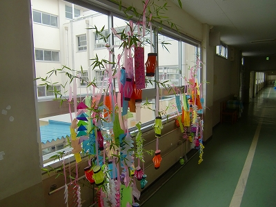 7月3日(水)1年生ろうかに「七夕かざり」登場
