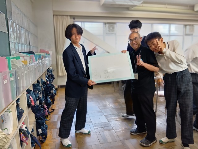 せっかくなので、誰でも見れるようにと大切に飾っています!(本校1階、職員室前廊下のじゅんちゃん堂にて公開中)