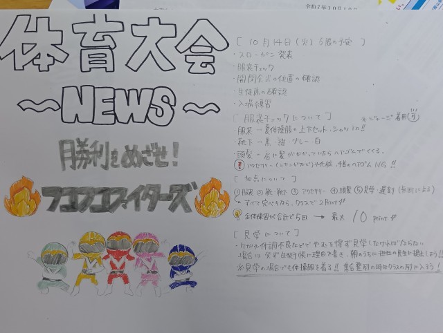 【10月24日】いよいよ来週体育大会本番!!その予行を本日行います!!!