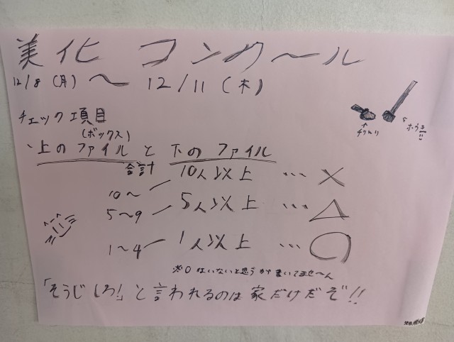 美化委員会による取り組みで、ボックスの中が散乱し荒れていることがあるので、