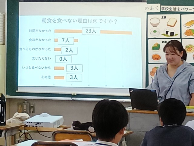1年生と2年生の各クラスで、栄養教諭による「食育授業」が実施されました。