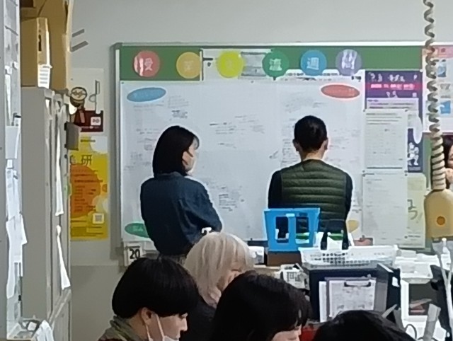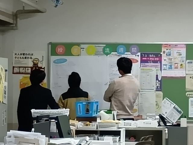 深野中学校の教員は、日々研修をしながら、授業改善に取り組んでいます。