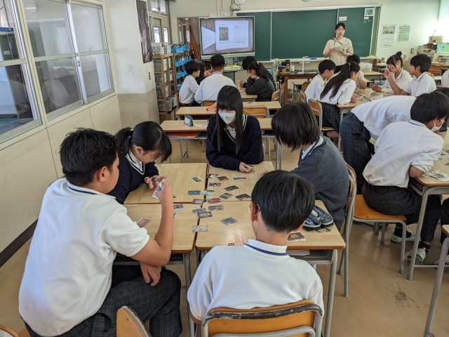 その授業では、①ある絵を見る。②その絵の説明をする。③説明を読み札、絵を取り札としたかるたをする。