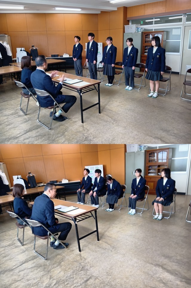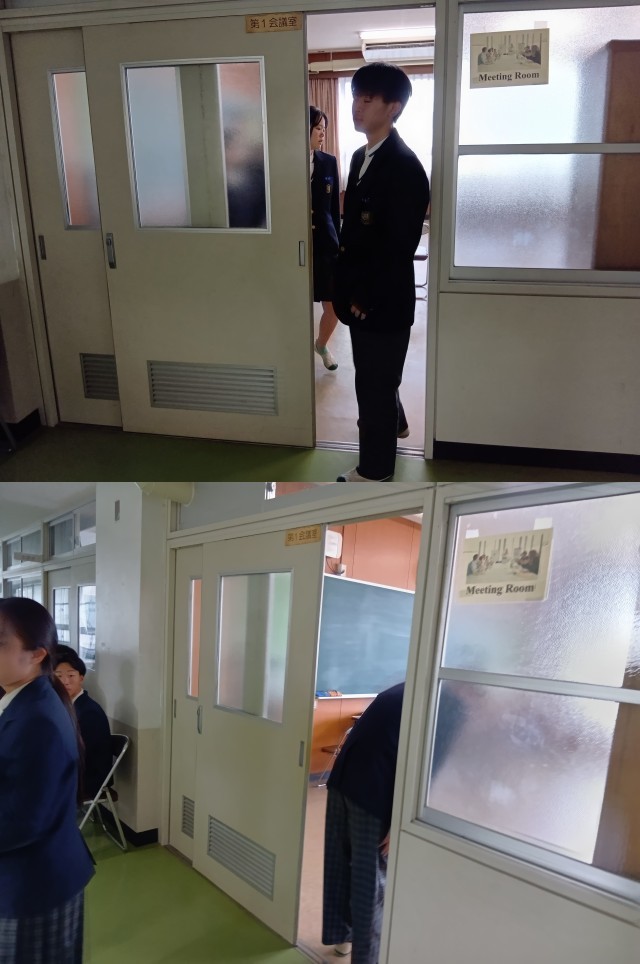 緊張している生徒が多く、部屋への入り方、座り方、話し方など何度も繰り返し復習をしていました。