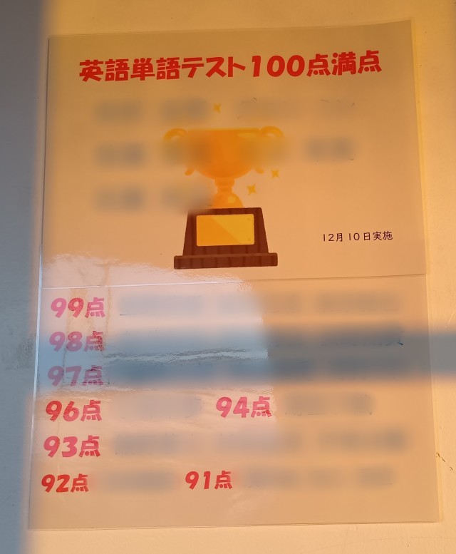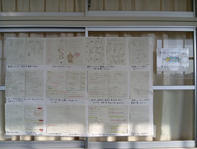 (写真は、1年生の廊下に掲示している生徒の頑張りです。この間まで、国語の授業やテストに関する結果も掲示されていたのですが、無くなってしまっておりました。。。