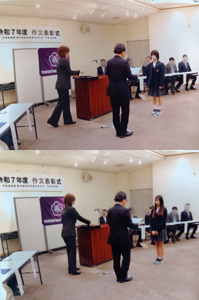 門真税務署管内租税教育推進協議会会長賞に2名選ばれました。