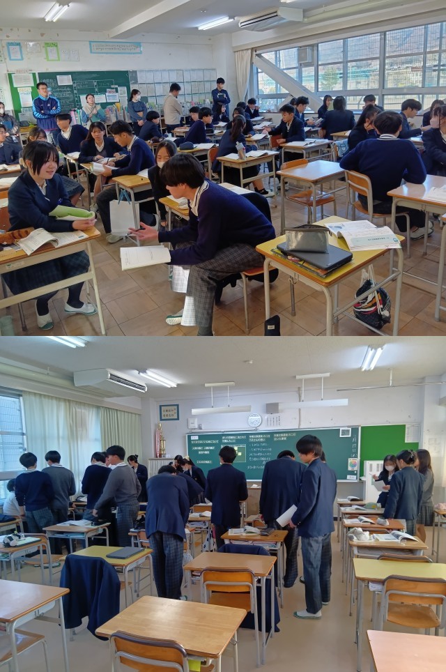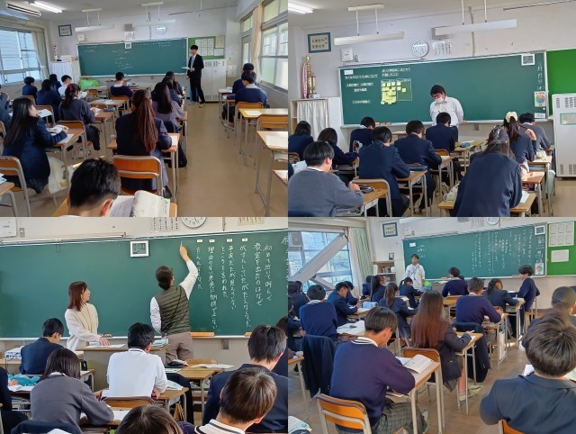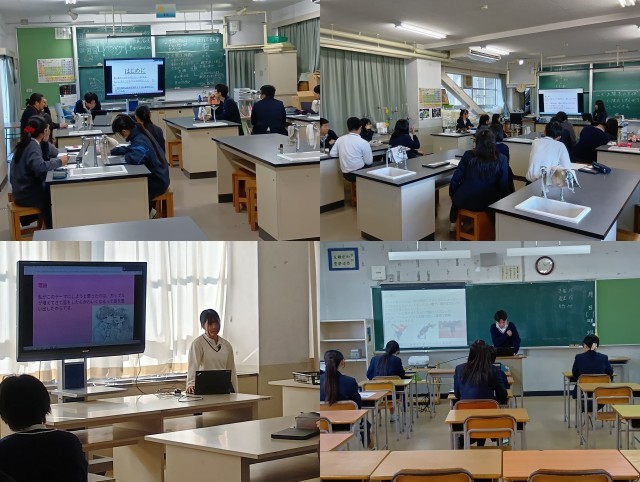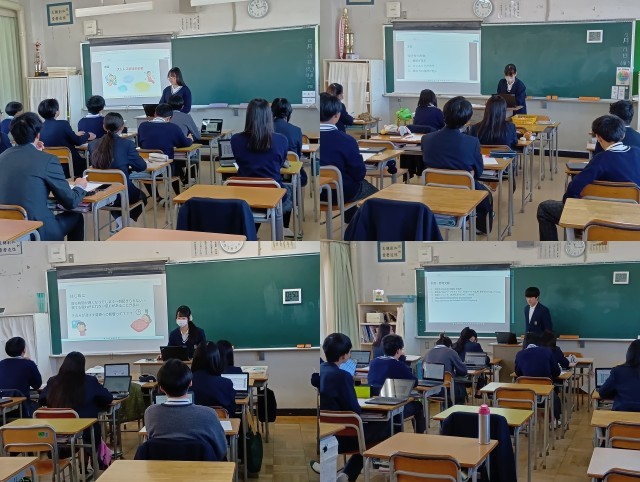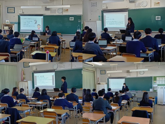 (掲載した写真は、12月に行った3年生道徳公開授業と探究学習発表会の様子です。)