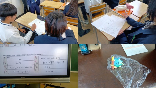 今回は美術の授業で、「紙粘土で、マイキャラクターを作ろう」でした。