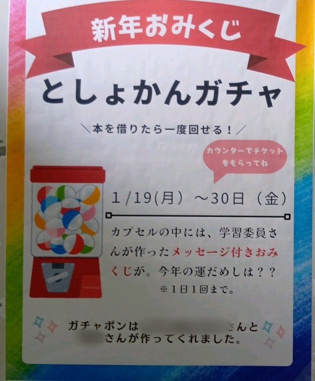 1月19日~30日の間、図書館の利用率を上げるため、学習委員会がおみくじを作成し、